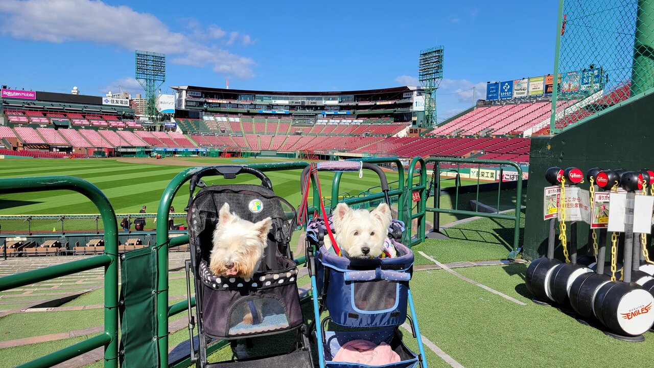 11月頭の連休、普段はワンコは入れない楽天球場に入れるというイベント、