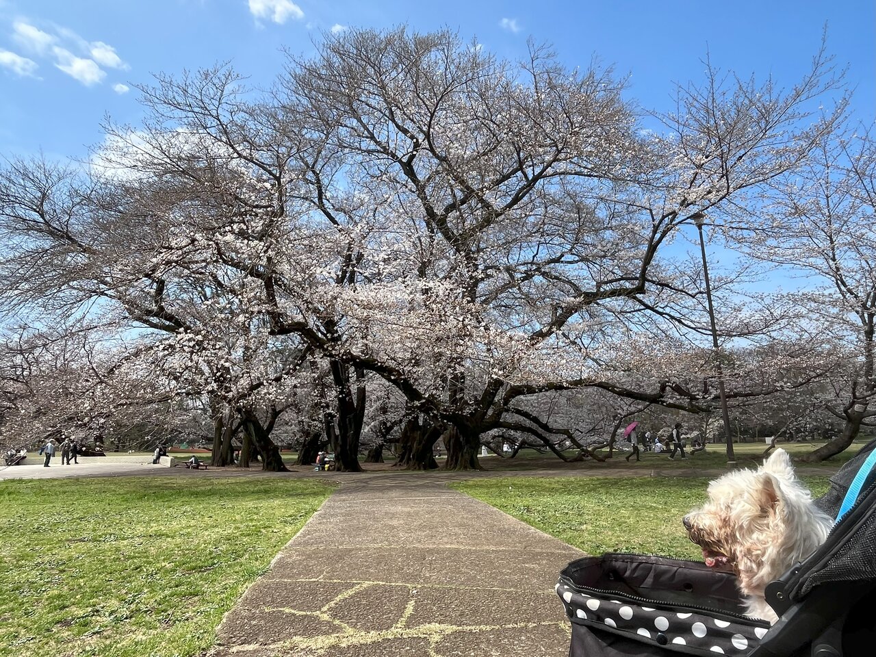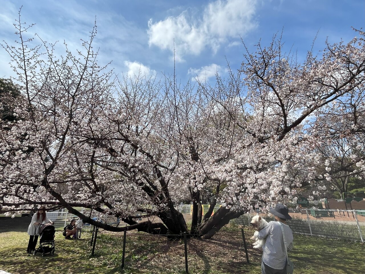 一番立派な桜はペット立ち入り禁止区域なので、遠くから